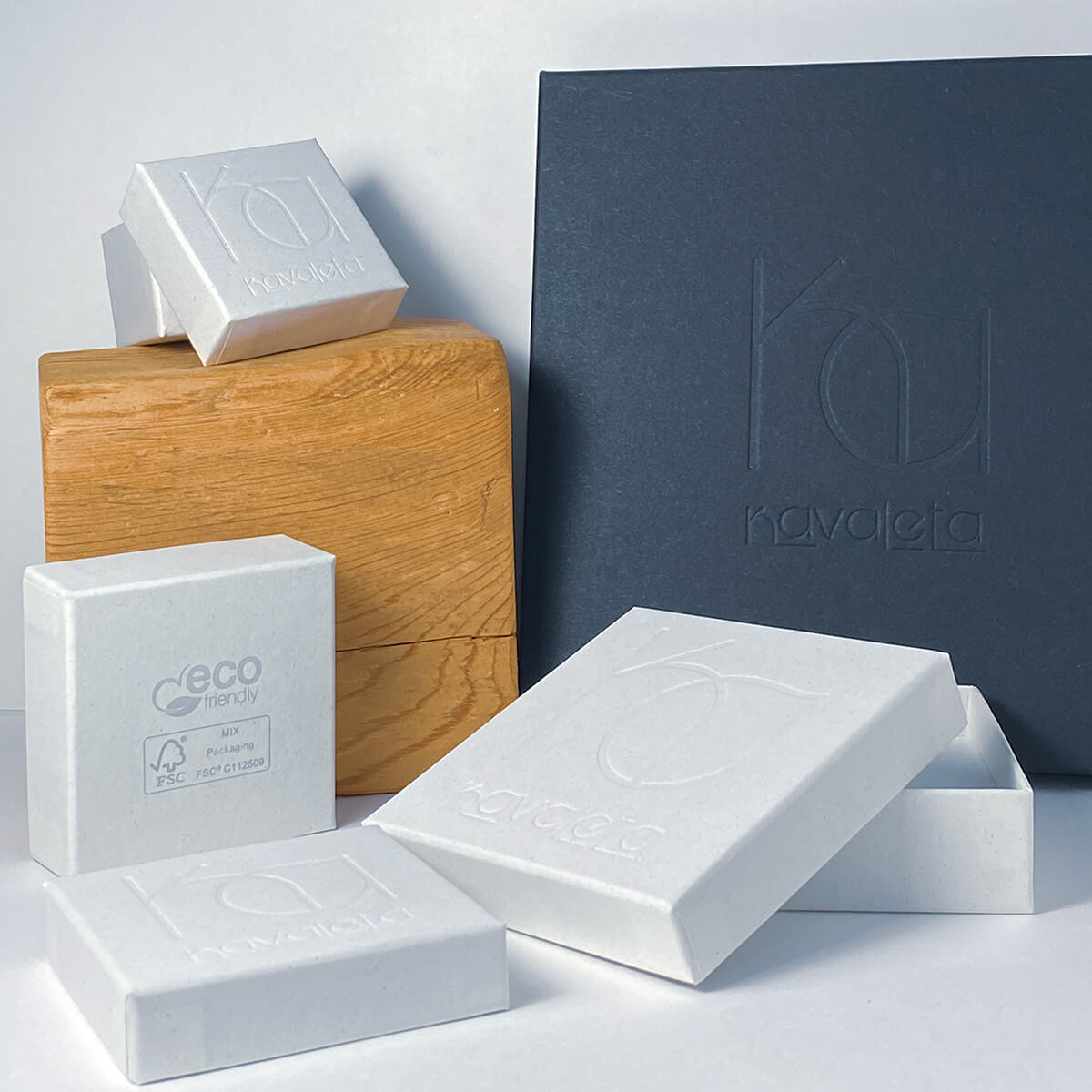 Creo que cada acción cuenta y por eso opto por un packaging ecológico para las piezas de Kavaleta. Las cajitas están hechas de cartón con certificación FSC® y cola al agua.