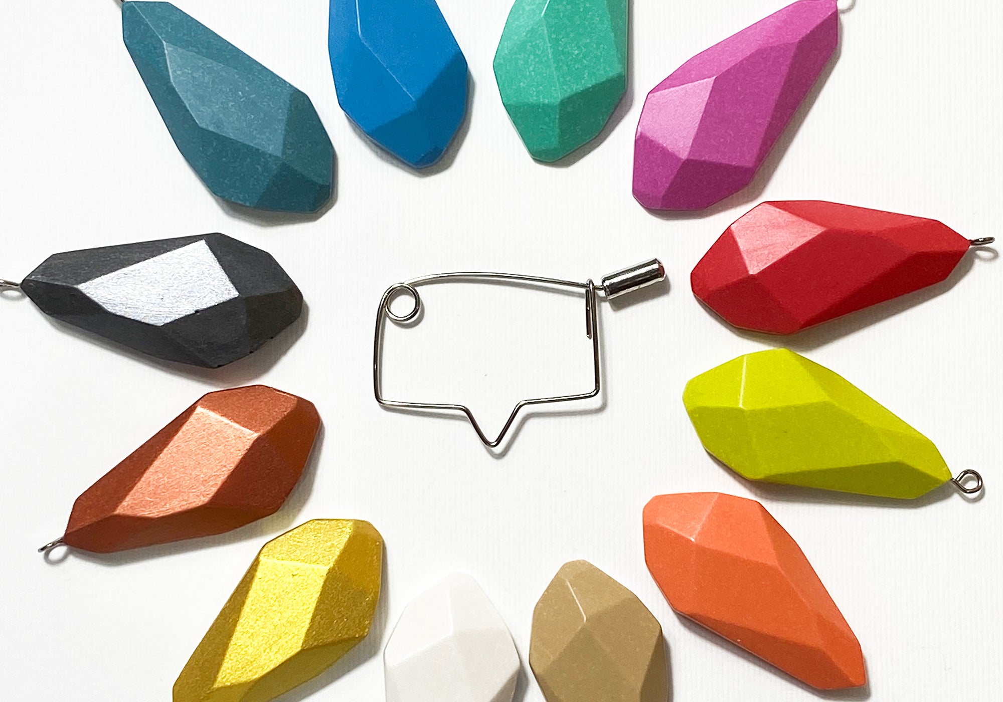 Super ligeros pendientes realizados mediante procesos sostenibles. Disponibles en una amplia gama de colores, versiones