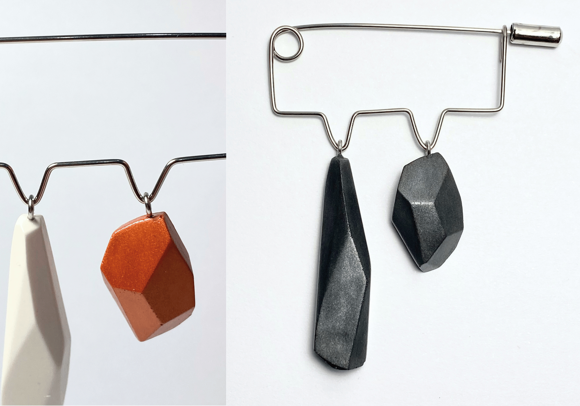 Este diseño de Broche de estilo contemporáneo, es una pieza única que combina dos formas diferentes, creando un diseño asimétrico lleno de originalidad.
